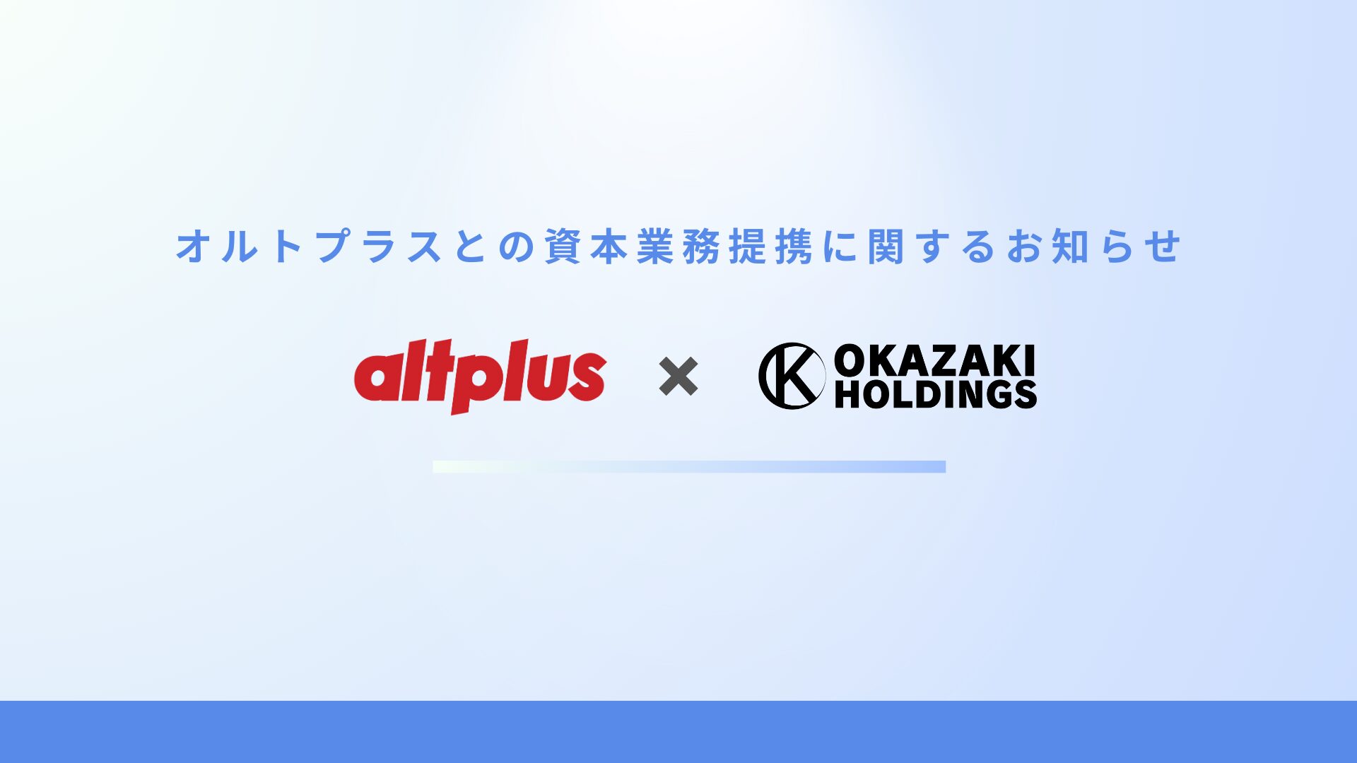 株式会社オカザキホールディングス(本社:東京都港区、代表取締役:岡﨑 太輔、以下「当社」)は、このたび株式会社オルトプラス(本社:東京都豊島区、代表取締役:石井 武、東証スタンダード市場上場、証券コード:3672、以下「オルトプラス社」)と資本業務提携契約を締結いたしましたことをお知らせいたします。